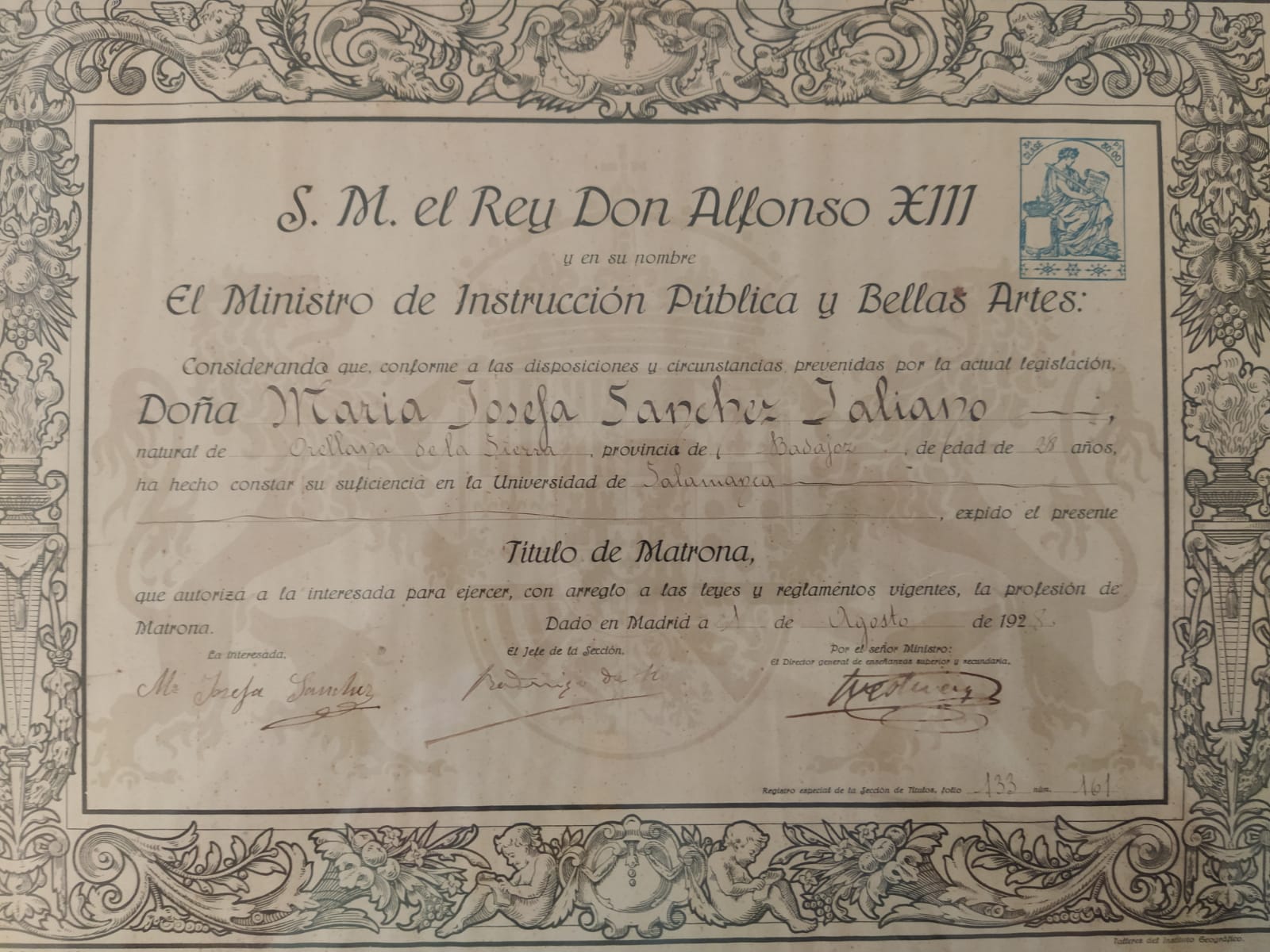 Estuvo muchos años de interina, porque no se convocaban oposiciones, cuando se convocaron fue a examinarse a Madrid. Se trataba de un examen oral y otro escrito. En el oral le preguntaron qué haría ella si en el alumbramiento se produjese una hemorragia, y ella dijo que haría un taponamiento, entonces el examinador le dijo que qué haría si eso no fuera suficiente y le contestó que pondría un hemostático, entonces le preguntó qué haría si no fuese suficiente con taponamiento y hemostático, entonces, sin cortarse ni un milímetro, le dijo: