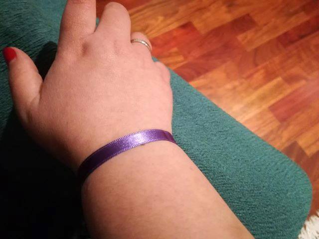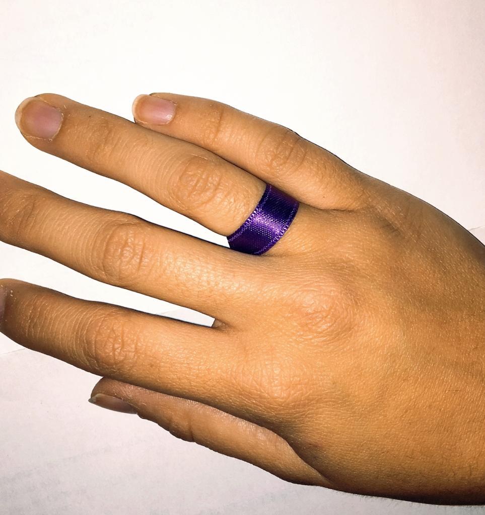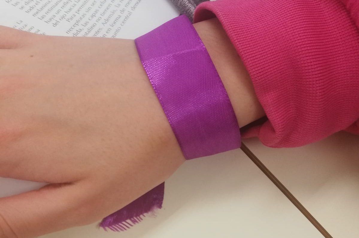 - En un principio usaremos una cinta violeta dado que es algo que todas podemos conseguir fácilmente en cualquier mercería y de coste bajo.