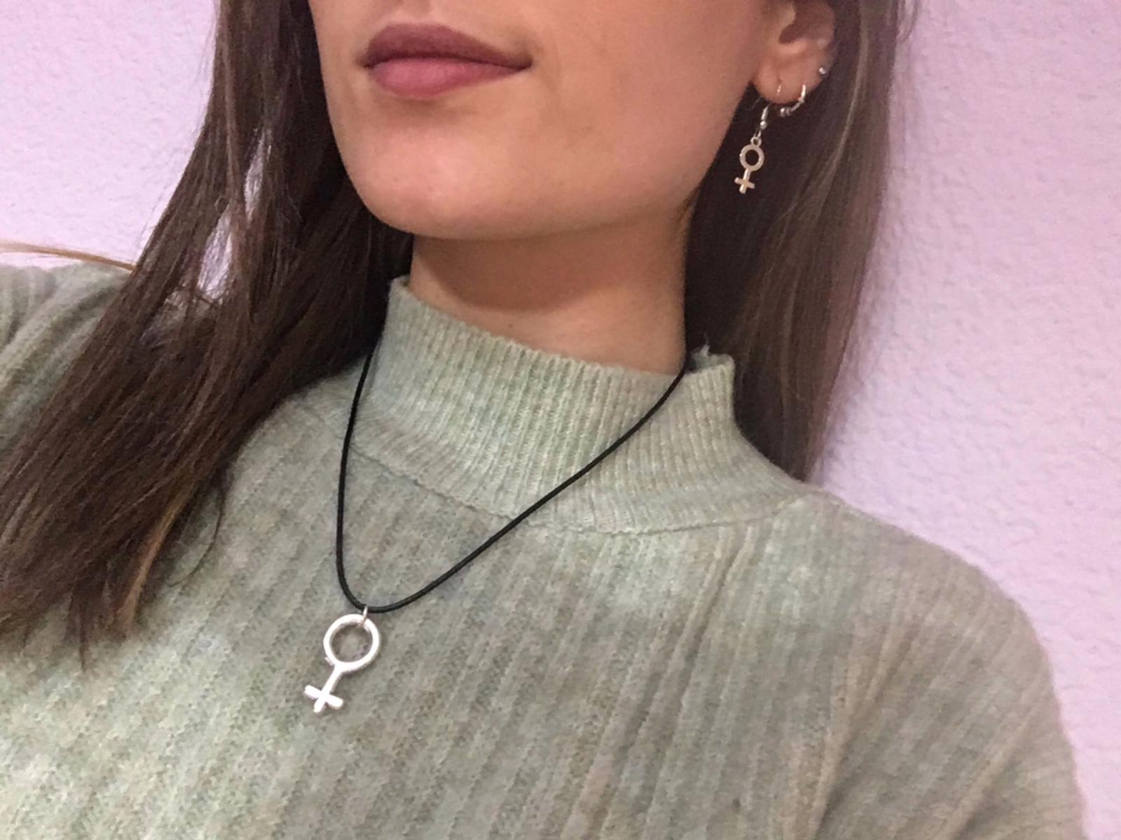 Pendientes con el símbolo feminista. Envío gratuito a la península. Por un donativo de 3€.